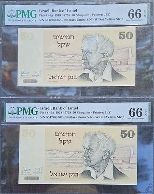 המחיר הופחת! 50 לירות שנת 1960 מספר שחור, 9 שטרות מספרים רצים מצב unc